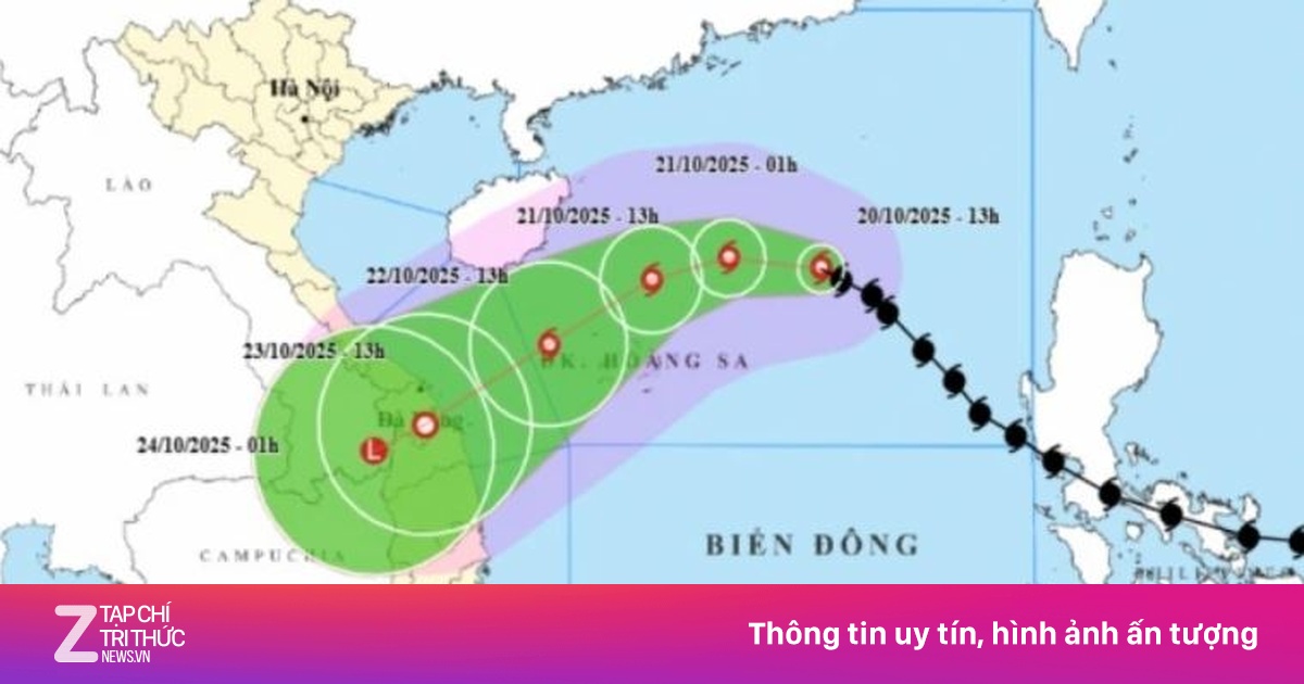 Đến 13 giờ ngày 22/10, bão trên vùng biển phía Tây Bắc đặc khu Hoàng Sa, sức gió mạnh cấp 9, giật cấp 11, di chuyển theo hướng Tây Nam với tốc độ khoảng 10 km/h và có khả năng suy yếu. Khu vực ảnh hưởng là vùng biển phía Tây khu vực Bắc Biển Đông (bao gồm đặc khu Hoàng Sa), vùng biển từ Nam Quảng Trị đến Quảng Ngãi. Cấp độ rủi ro thiên tai cấp 3.
