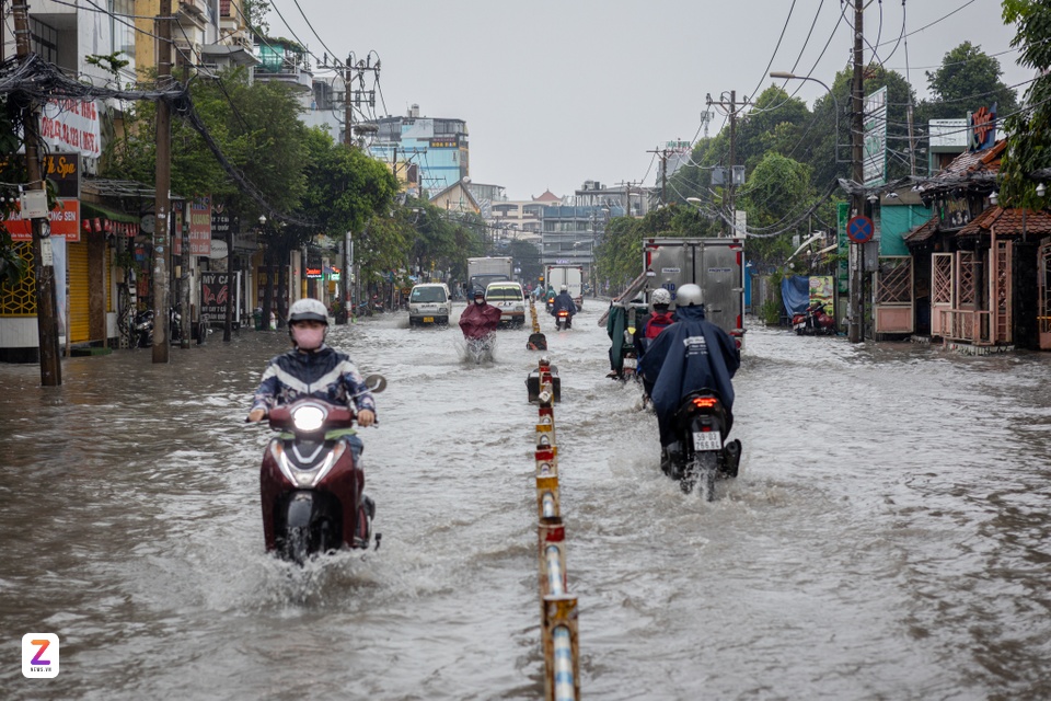 | Đường Nguyễn Văn Khối (quận Gò Vấp cũ) ngập nặng sau mưa lớn. Ảnh: Khương Nguyễn. |