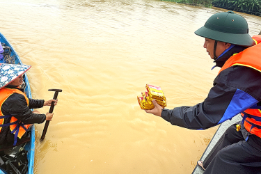 Đoàn cũng trao tặng 40 tấn lương khô, hàng nghìn lều bạt và thiết lập một bệnh viện dã chiến để tiếp nhận, cấp cứu và điều trị cho hơn 200 lượt người dân vùng thảm họa. Đại úy Nguyễn Duy Tân (Bệnh viện Quân y 354) cùng 29 cán bộ chiến sĩ quân y Việt Nam cho biết mỗi ngày quân y đảm nhiệm hai nhiệm vụ chính là bảo đảm an toàn, khám chữa bệnh ban đầu cho cán bộ chiến sĩ và người dân, đồng thời phụ trách hậu cần, trang bị.