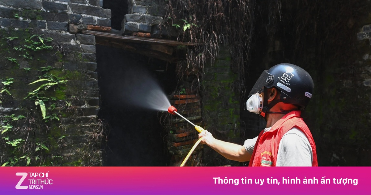 Một ngôi làng tại Phật Sơn được phun thuốc diệt muỗi hồi tháng 7. Ảnh: Tân Hoa xã. |