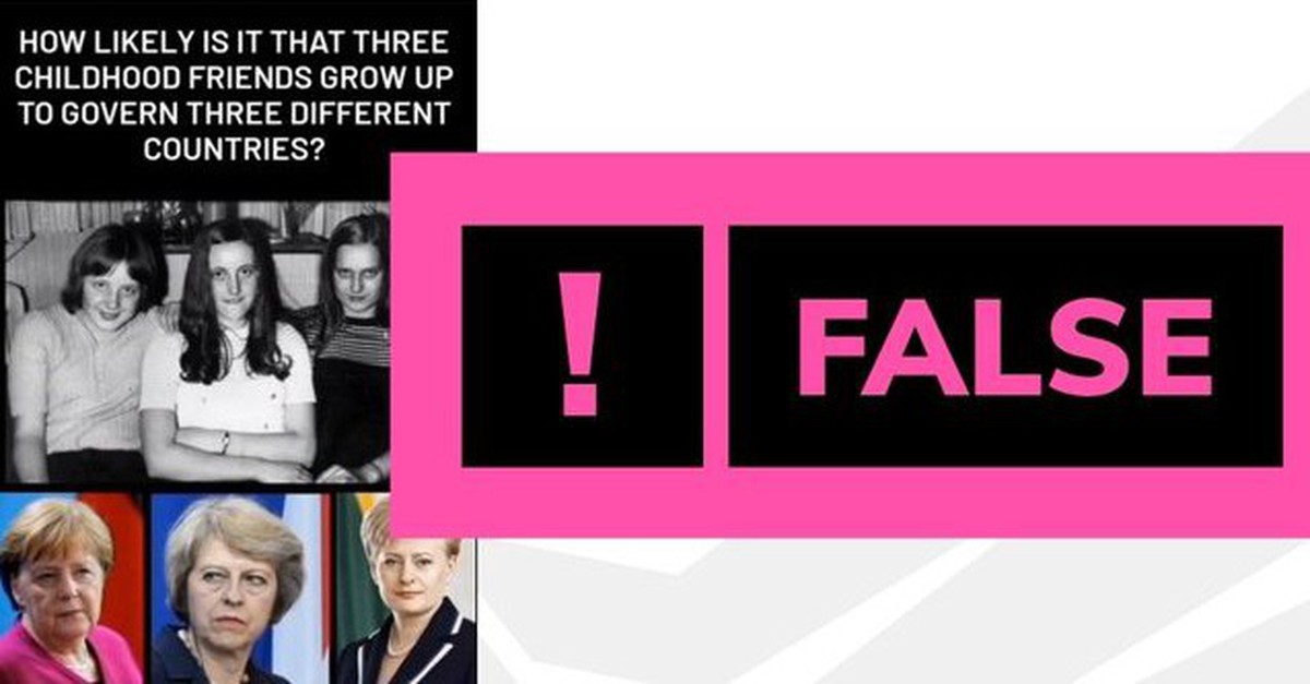 Một bức ảnh chụp ba cô gái tuổi thiếu niên đang được chia sẻ trên Facebook kèm theo chú thích cho rằng những người trong ảnh là cựu thủ tướng Đức Angela Merkel, cựu thủ tướng Vương quốc Anh Theresa May và chủ tịch Ủy ban châu Âu Ursula von der Leyen.