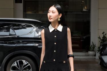 Phom chữ A nhẹ nhàng cùng phần vai độn tinh tế tạo cảm giác vững chãi và quyền lực, trong khi cổ vest và hàng cúc tay áo gợi nhắc đến sự cổ điển của măng tô kinh điển. Khi nàng phối cùng legging đen và giày loafer mũi nhọn, tổng thể trang phục đạt sự hài hòa giữa nét thanh lịch và hiện đại, còn chiếc túi xách cầm tay màu đen ánh bạc làm điểm nhấn sang trọng. Đây là lựa chọn hoàn hảo để nàng vừa giữ ấm trong những ngày se lạnh vừa thể hiện trọn vẹn gu thẩm mỹ tinh tế và phong thái tự tin của mình.
