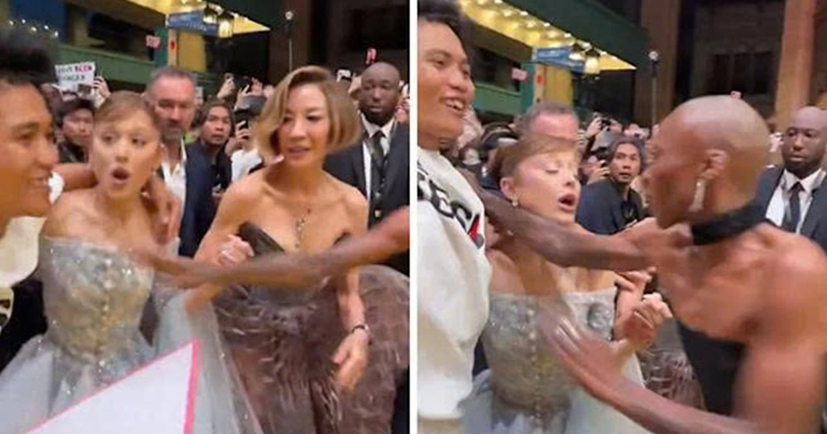 Sự cố xảy ra khi Ariana Grande cùng bạn diễn Cynthia Erivo xuất hiện trên thảm đỏ tại Universal Studios Singapore tối 13.11. Khi cả hai đang di chuyển, một người đàn ông bất ngờ chạy thẳng về phía Ariana Grande và quàng tay qua người cô.