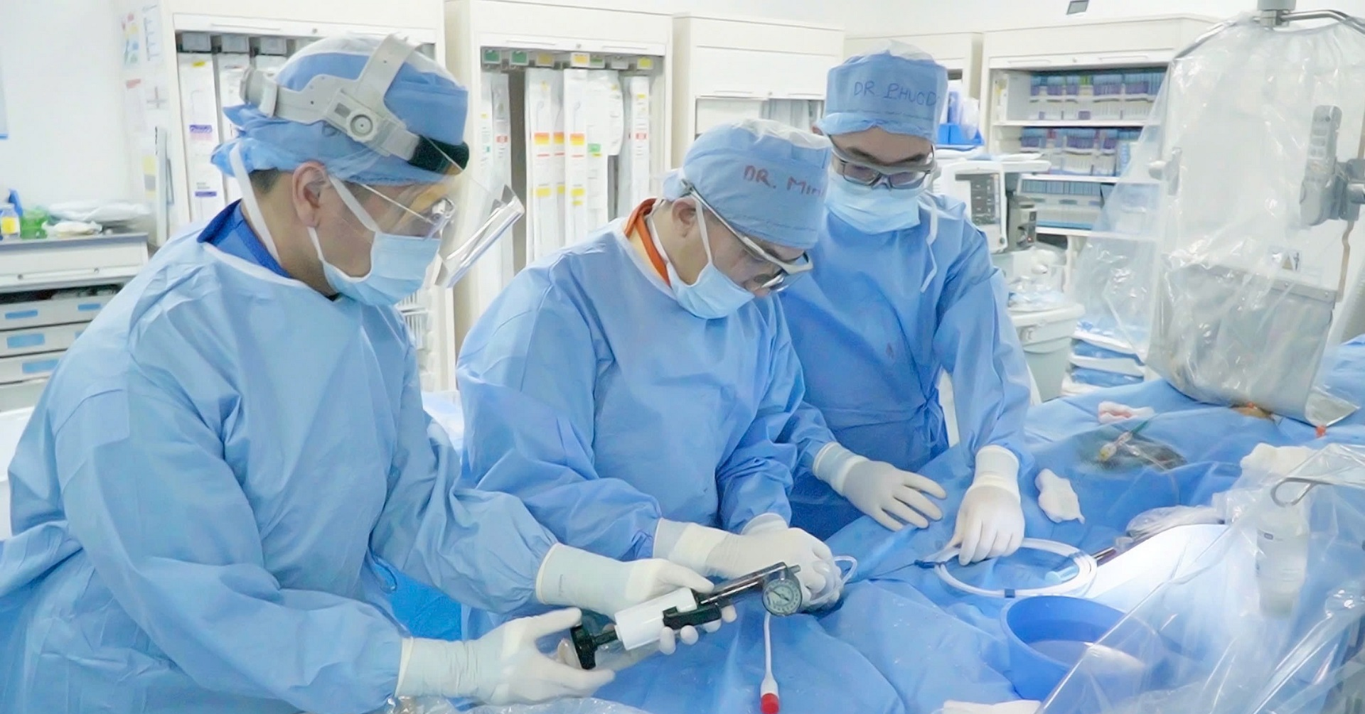 22 giờ đêm, phòng Cathlab tại Bệnh viện FV sáng đèn. Dưới sự chỉ huy của TS.BS Hồ Minh Tuấn - Trưởng khoa Tim mạch và Tim mạch can thiệp, ê-kíp đã vào vị trí sẵn sàng.