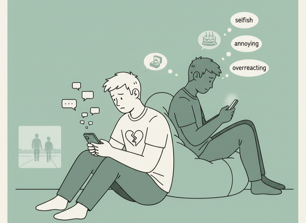 Tôi là người đồng tính nam, đang quen một người bằng tuổi được hơn một năm. Chúng tôi yêu nhau khá bình lặng, không giống các cặp đôi đồng tính khác thích đi nhậu, bar, club. Chúng tôi chỉ hay đi nghe nhạc, xem phim, ăn uống, đi dạo. Anh là một người tốt, thương tôi, thích thể hiện tình cảm và chu đáo. Lễ tình nhẫn anh mang nhẫn, quà đến tận chỗ tôi làm.