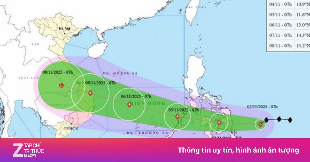 Theo đó, hồi 7h ngày 3/11, vị trí tâm bão Kalmaegi ở vào khoảng 10,7 độ Vĩ Bắc; 129,0 độ Kinh Đông, trên vùng biển phía Đông miền Trung Philippines.