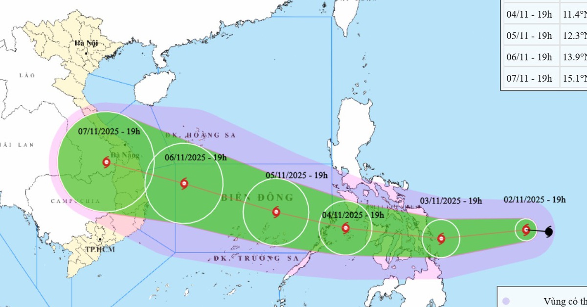 Theo Trung tâm Dự báo khí tượng thủy văn quốc gia lúc 19h tối 2-11, tâm bão Kalmaegi đang ở trên vùng biển phía đông miền trung Philippines. Sức gió mạnh nhất vùng gần tâm bão mạnh cấp 10 (89-102km/h), giật cấp 13 - tăng 1 cấp so với thời điểm 16h chiều nay.