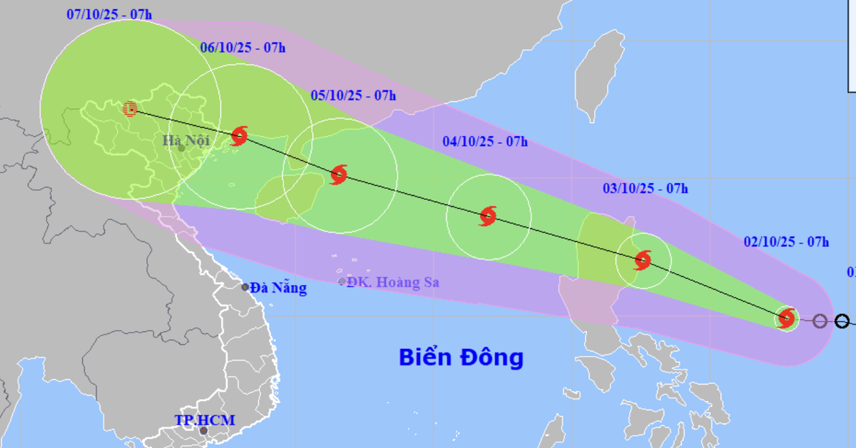 Đến 7h sáng 5-10, tâm bão trên vùng biển phía tây bắc khu vực bắc Biển Đông, cách đảo Hải Nam (Trung Quốc) 70km về phía đông bắc, cường độ bão lúc này mạnh cấp 12, giật cấp 15.