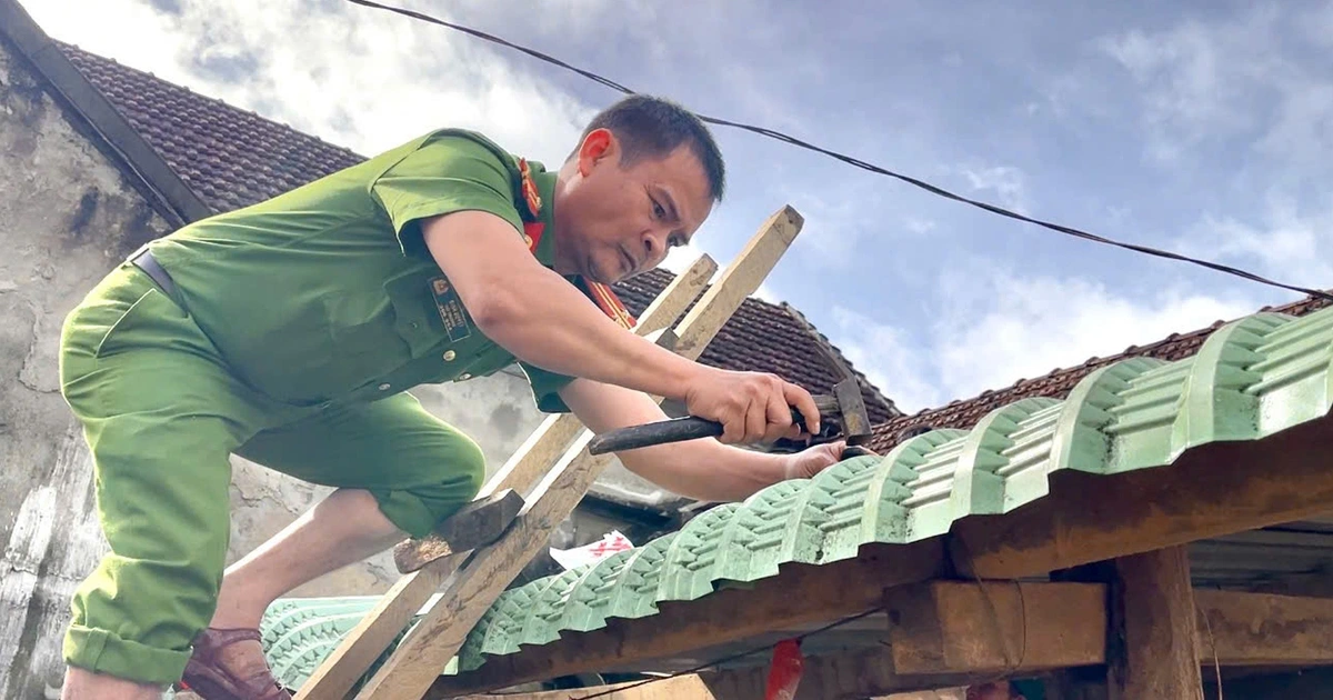 Không chỉ dừng lại ở việc lợp lại mái nhà, các chiến sĩ công an còn lau dọn từng gian phòng, thu gom rác thải, chặt dọn cây đổ, sửa lại hệ thống điện, hàng rào, khơi thông rãnh thoát nước và dựng lại chuồng trại quanh nhà cụ Trung. "Không có các chú công an, chắc thuê người làm cũng còn lâu mới xong được…", cụ Trung xúc động nói.