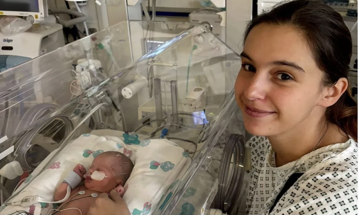 Tuy nhiên, cô không kịp đến nơi và sinh một bé trai ngay trên xe cứu thương nhưng em bé sinh non bị tím tái và ngừng thở. Các nhân viên y tế ngay lập tức tiến hành hô hấp nhân tạo và cấp cứu, giúp đứa trẻ thở lại trước khi đến bệnh viện.