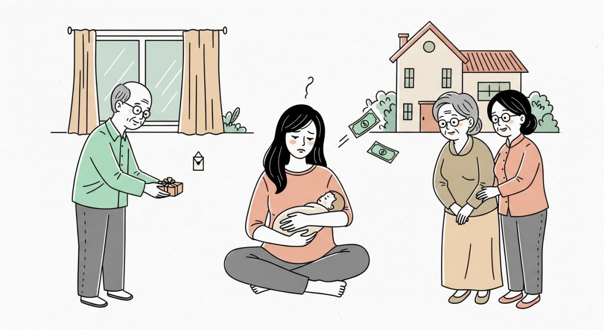 Bố mẹ chồng đi làm, tôi sinh xong nhưng bố mẹ chưa sắp xếp được công việc để ở nhà phụ chăm bé. Bố mẹ nhờ bà nội sang nấu ăn cho tôi buổi trưa (vì tôi mới sinh chưa đi lại bình thường), nhưng bà từ chối với lý do phải đi làm cho cô chồng, dù bố mẹ chồng chỉ nhờ vài ngày cuối tháng. Cả tháng trời, bà sang bế chắt được hai lần và không phụ giúp việc gì. Trong tháng đó, chồng tôi về hai lần. Mỗi lần về đều mua đồ hoặc cho ông tiền. Lúc ấy tôi nghĩ: trước giờ tôi không xét nét việc chồng cho ông bà, tôi cũng cho. Nhưng giờ mới sinh, vợ chồng khó khăn mà ông bà vẫn nhận.