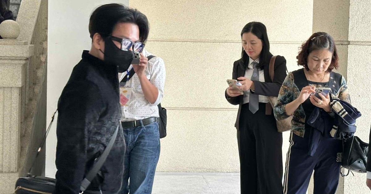 Ca sĩ Vũ Hà được tại ngoại, từ lúc xuất hiện đến khi ngồi vào hàng ghế bị cáo ông đều đeo khẩu trang che kín mặt.
