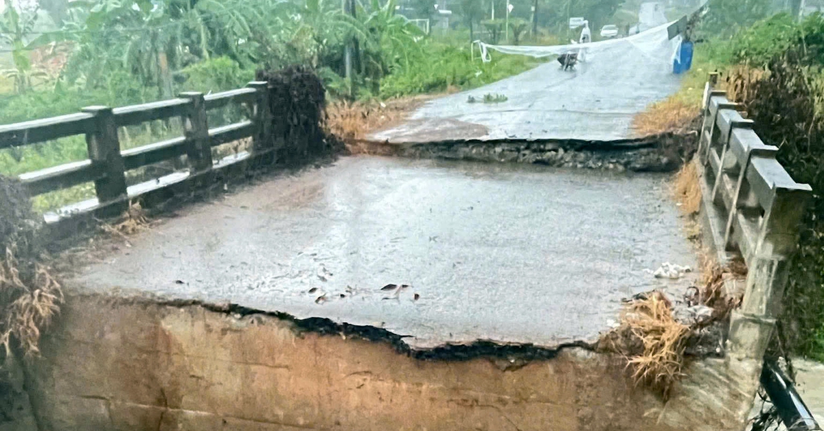 Sự cố khiến cầu hư hỏng nặng, sụt lún không thể lưu thông và có nguy cơ bị cuốn trôi nếu tiếp tục mưa. May mắn thời điểm sự cố xảy ra không có xe cộ, người dân qua lại.