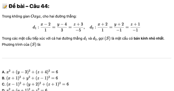 Trong khi đó, theo quy chế thi tốt nghiệp THPT, đề môn Toán gồm 50 câu trắc nghiệm với thời gian làm bài 90 phút, trung bình thời gian giải mỗi câu chỉ khoảng 1,8 phút.