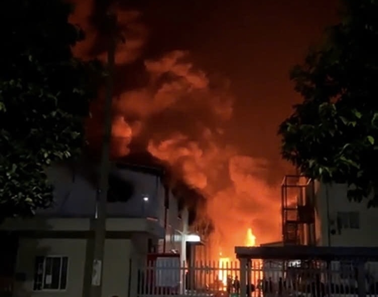 Do bên trong chứa nhiều nguyên liệu và hóa chất dễ cháy, hỏa hoạn nhanh chóng lan rộng, bao trùm toàn bộ xưởng.