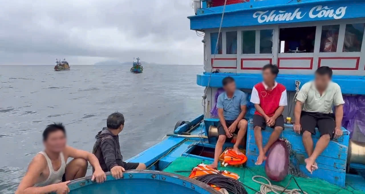 Ngay sau khi phát hiện tàu gặp sự cố, toàn bộ 11 ngư dân trên tàu đã kịp thời leo lên hai thuyền thúng và phát tín hiệu cầu cứu khẩn cấp.