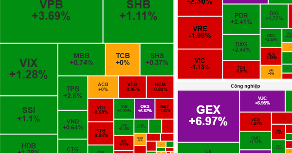 Điểm nhấn trong phiên sáng thuộc về các cổ phiếu ngân hàng như VPB, LPB, MBB và nhóm cổ phiếu thuộc hệ sinh thái GEX (GEE, GEX), với mức tăng tốt giúp VN-Index duy trì sắc xanh. Thế nhưng, do áp lực chốt lời gia tăng về cuối phiên sáng đã khiến VN-Index giảm điểm nhẹ.
