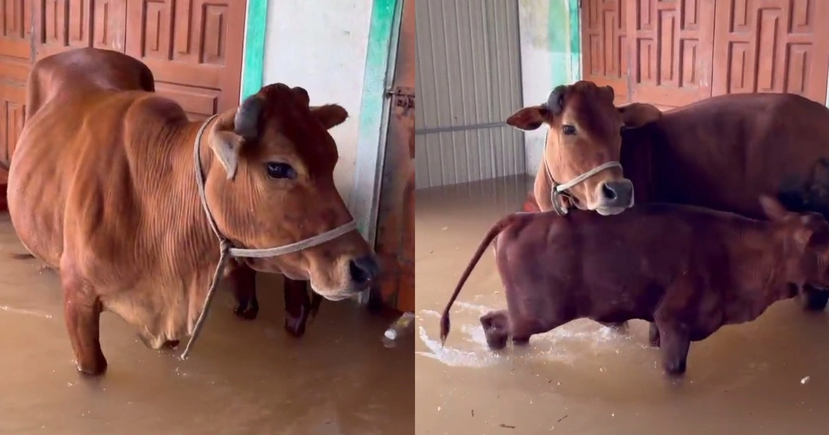 Khi nước lũ dâng cao, gia đình chủ nuôi chỉ biết dặn hai mẹ con bò tự tìm chỗ trú. Sau một đêm lưu lạc, chúng bất ngờ trở về nhà an toàn khiến cả gia đình ngỡ ngàng và xúc động.