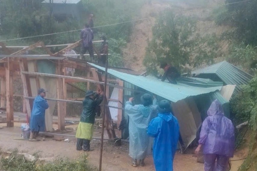 Khẩn trương sở tán nhân dân tại những vùng sạt lở nguy hiểm. Ảnh: PV/Vietnam+ |