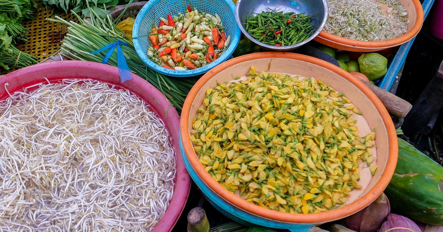 Từ tháng 7 đến tháng 10 âm lịch, mùa nước nổi ở An Giang, Đồng Tháp, Cần Thơ mang đến nhiều sản vật "trời cho" như cá linh, lươn đồng, bông súng, hẹ nước và đặc biệt là bông điên điển.