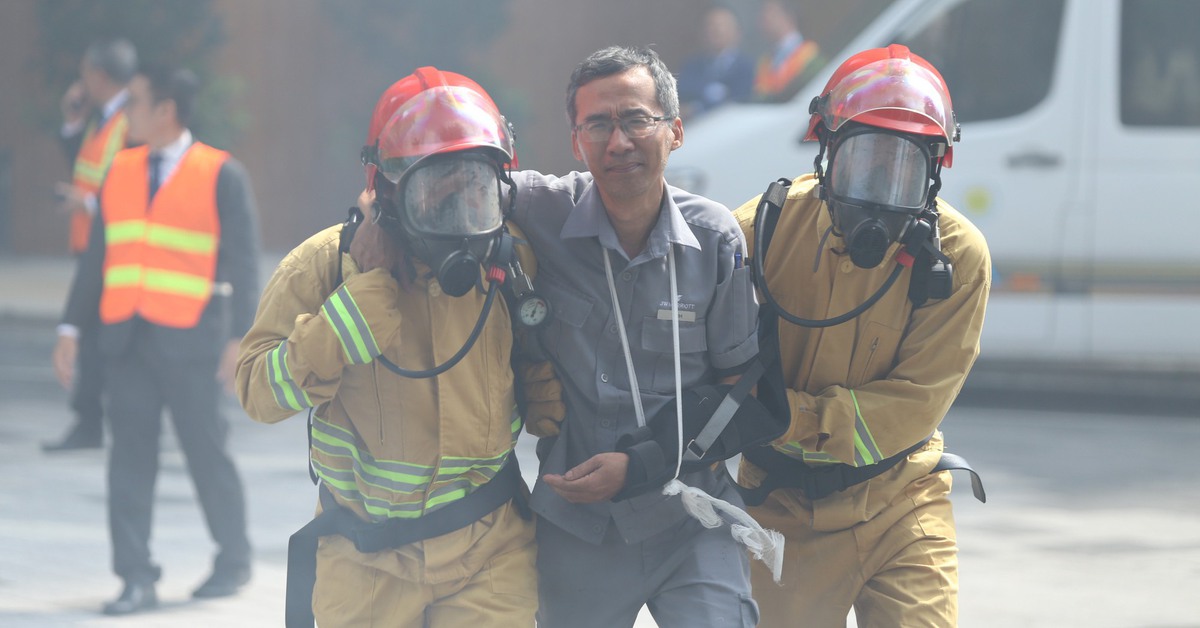 Xe trong tầng hầm tòa nhà mPlaza đường Lê Duẩn (phường Sài Gòn, TP.HCM) bốc cháy dữ dội, khói lửa bùng phát khiến 1.000 người hốt hoảng, bỏ chạy tán loạn là tình huống giả định diễn tập phòng cháy chữa cháy.