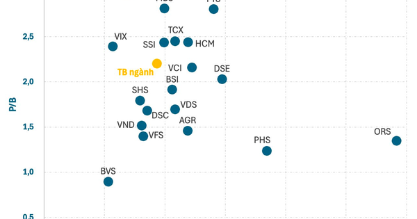 Trong phạm vi tính toán 20 cổ phiếu công ty chứng khoán trên sàn, P/B (Price to Book) vào khoảng 2,2 lần. Con số không quá cao trong bối cảnh thị trường sôi động và có triển vọng lạc quan.