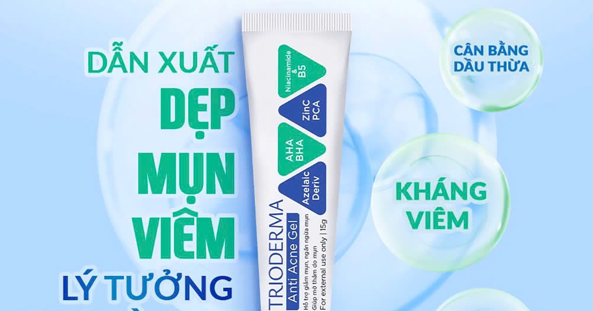 Với sự kết hợp của công thức khoa học đa hoạt chất, tác động đa chiều và nhẹ dịu, Trioderma Anti Acne Gel giúp chăm sóc toàn diện làn da mụn. Đây là sản phẩm chăm sóc da không thể thiếu trong liệu trình chăm sóc da mụn, nhất là dành cho lứa tuổi đang dậy thì; các bạn trẻ Gen Z thường gặp vấn đề mụn do thói quen sinh hoạt, bụi bẩn. Trioderma Anti Acne Gel chính là người bạn đồng hành giúp làn da sạch mụn, thâm, khỏe đẹp và rạng rỡ đầy tự tin.