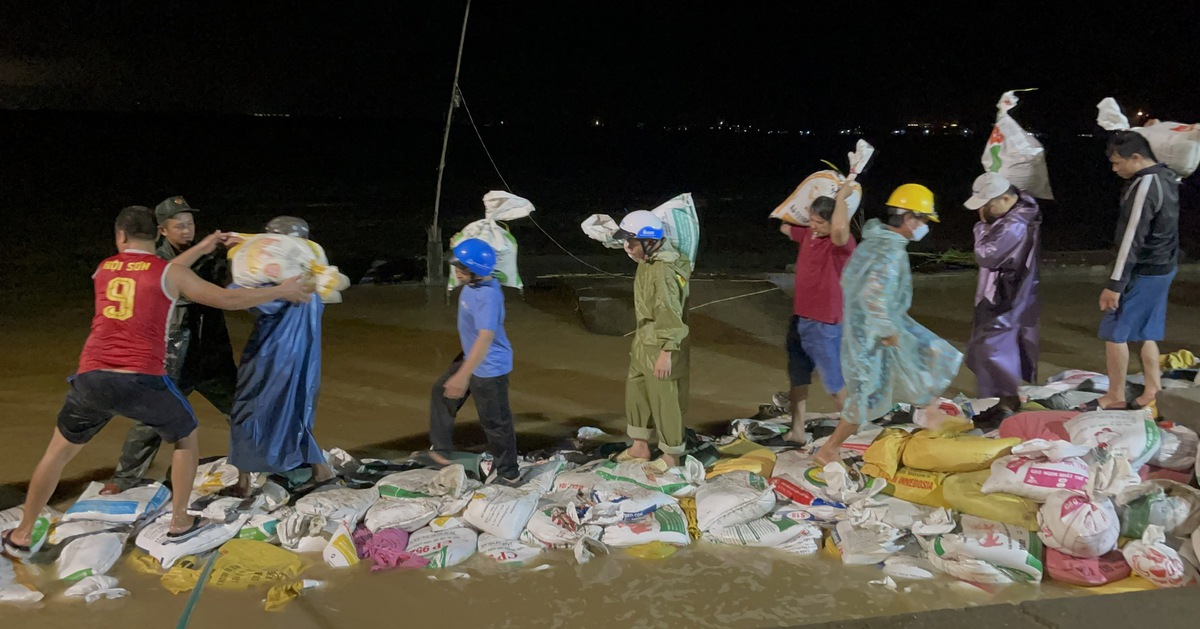Mưa lớn những ngày qua khiến một đoạn bờ kè bến cá An Lương, xã Duy Nghĩa (TP Đà Nẵng) bị sập. Chính quyền, quân đội cùng các lực lượng xuyên đêm đắp bao cát gia cố.