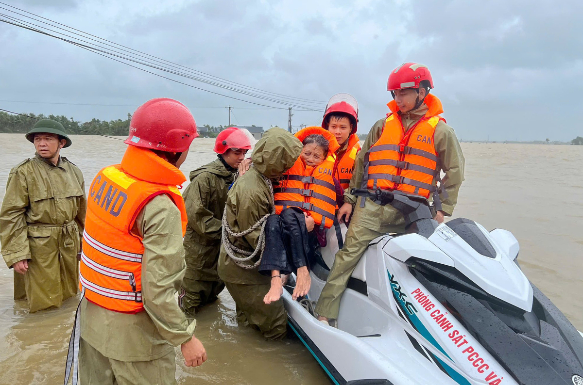 Gần trưa 29/9, Phòng Cảnh sát Phòng cháy chữa cháy và Cứu nạn cứu hộ, Công an tỉnh Thanh Hóa, nhận tin báo nhóm công nhân bị cô lập trong nước lũ. Đơn vị huy động ca nô và 11 cán bộ, chiến sĩ đến hiện trường. Sau gần hai giờ, toàn bộ 13 người được đưa ra ngoài an toàn.