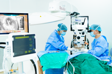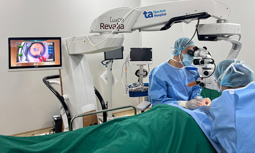 BS.CKII Bùi Việt Hưng, Trưởng khoa Dịch kính Võng mạc, Trung tâm Mắt Công nghệ cao, cho biết bà Bình bị đục thủy tinh thể trong thời gian dài, nhân thủy tinh thể ở mắt trái đã xơ hóa nặng trở nên cứng và mất tính đàn hồi, khiến thao tác tán nhuyễn và hút ra gặp nhiều trở ngại. Bác sĩ sử dụng năng lượng siêu âm cao hơn, đặt chính xác thủy tinh thể nhân tạo đúng vị trí, tránh làm nhân thủy tinh thể rơi vào trong buồng dịch kính phải mổ lại phức tạp hơn.
