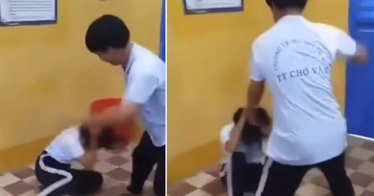 Đoạn clip dài hơn 30 giây. Trong đó cho thấy nữ sinh bị 2 nam sinh dùng tay đánh nhiều cái vào đầu, một trong 2 học sinh còn dùng chân đạp vào đầu nữ sinh. Nữ sinh không phản kháng, chỉ ôm đầu chịu trận.