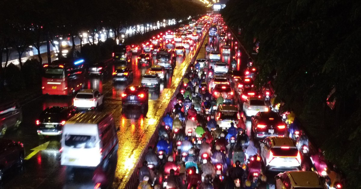 Chiều 26-9, nhiều khu vực trung tâm TP.HCM đổ mưa, người dân tan sở về nhà giờ cao điểm 'dính' ùn ứ trên đường Võ Nguyên Giáp, phường Bình Trưng, TP.HCM.
