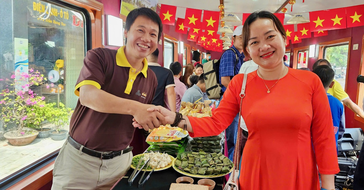 Đi trên chuyến tàu hỏa du lịch từ ga Quy Nhơn đến ga Diêu Trì (Bình Định), du khách hào hứng vì được thưởng thức bài chòi, những món đặc sản xứ nẫu, trực tiếp check-in và nghe thuyết minh các địa danh nổi tiếng trên hành trình tàu đi qua.
