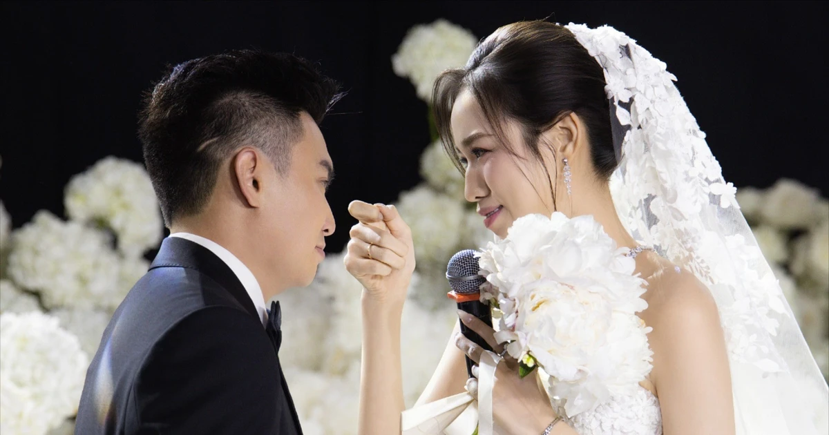 TPO - Khoảnh khắc bước vào lễ đường hay nghe lời thề nguyện từ chồng, Hoa hậu Đỗ Thị Hà không kìm nén được cảm xúc, liên tục rơi nước mắt.