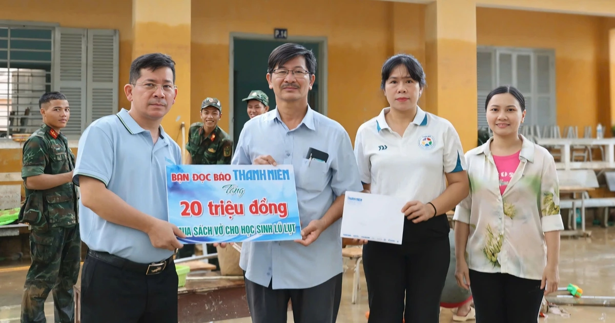 "Vùng ngập sâu, các em gần như trắng tay, sách vở, bút bảng trôi sạch, quần áo cũng hư hại hết. Món quà này của bạn đọc Báo Thanh Niên là sự hỗ trợ kịp thời đến các em học sinh của trường. Nhà trường trân trọng cảm ơn nghĩa cử cao đẹp của bạn đọc Báo Thanh Niên và xin hứa số tiền này sẽ dùng đúng mục đích là mua sách vở, bút viết cho các cháu", ông Trọng xúc động chia sẻ.