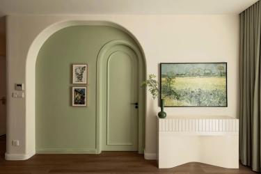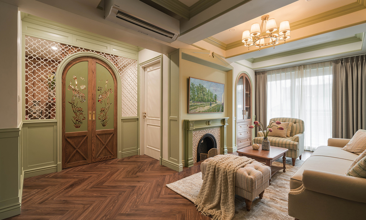 Thiết kế mang phong cách đồng quê châu Âu (farmhouse) với tone màu xanh bơ, tạo cảm giác yên bình và nhẹ nhàng. Không gian thông thoáng, các phòng đều có cửa sổ, nhận được nhiều ánh sáng tự nhiên.