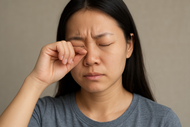 Nếu mắt bị ngứa hoặc đỏ, hãy làm dịu bằng cách chườm lạnh, dùng thuốc kháng histamin hoặc thuốc nhỏ mắt theo chỉ định của bác sĩ. Rửa mắt bằng nước muối sinh lý khi bị cộm xốn như có cát trong mắt. Người có các triệu chứng khó chịu vẫn tiếp diễn hoặc đau mắt, tiết dịch, sưng, nhạy cảm với ánh sáng nên đi khám chuyên khoa mắt.