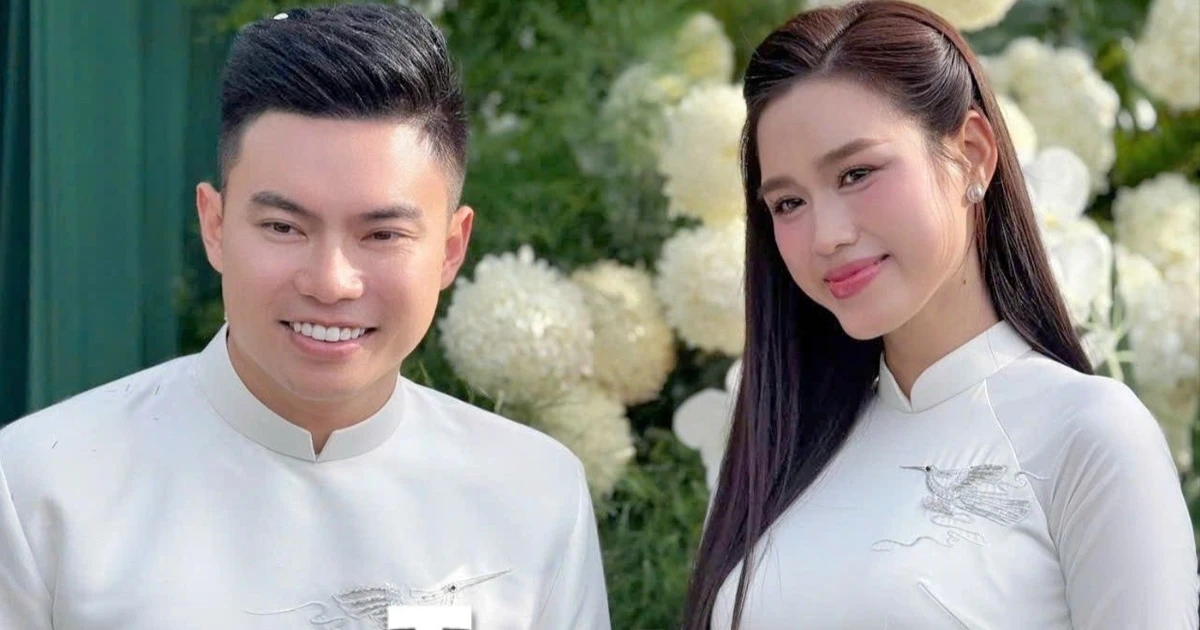 TPO - Trong lễ ăn hỏi sáng 16/10, Hoa hậu Đỗ Thị Hà chọn phong cách trang điểm dịu dàng. Cô xuất hiện trong trang phục áo dài trắng đơn giản, không đính kết quá cầu kỳ. Khoảng 8h, chú rể Viết Vương và đoàn nhà trai có mặt ở nhà gái.