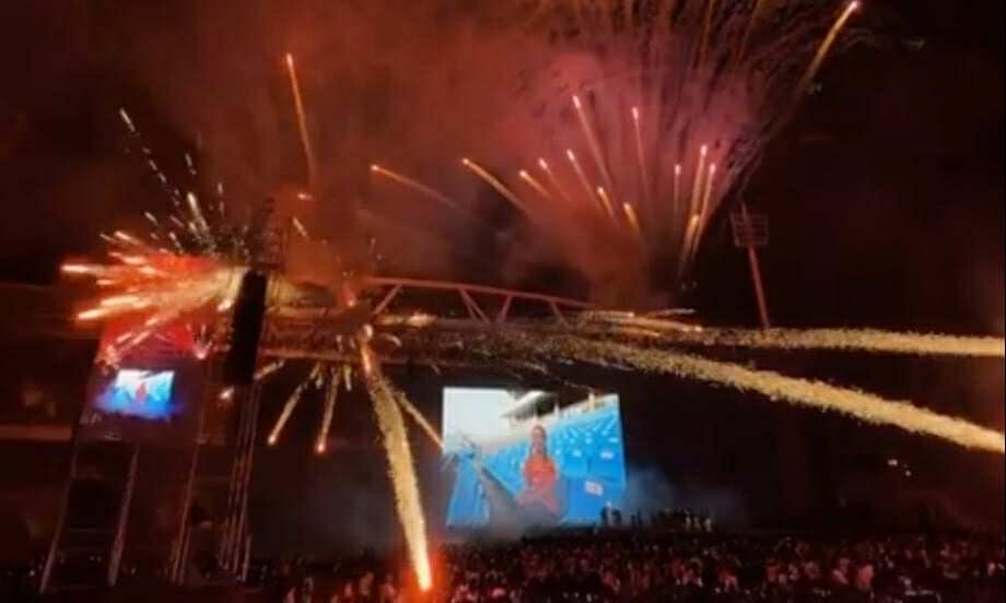 Ở màn trình diễn kết thúc concert lúc gần 23h, một luồng pháo hoa phụt trúng khu vực khán giả, khiến nhiều người la hét. Hiện chưa rõ có ai bị thương hay không.