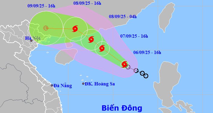 Dự báo trong 24 giờ tới, bão vẫn di chuyển theo hướng Tây Bắc, tốc độ 10-15km/h và tiếp tục mạnh thêm. Đến 16h ngày mai (7/9), vị trí tâm bão cách quần đảo Hoàng Sa khoảng 420km về phía Đông Bắc với sức gió mạnh cấp 9-10, giật cấp 12. Cấp độ rủi ro thiên tai: cấp 3, vùng biển phía Bắc Biển Đông.