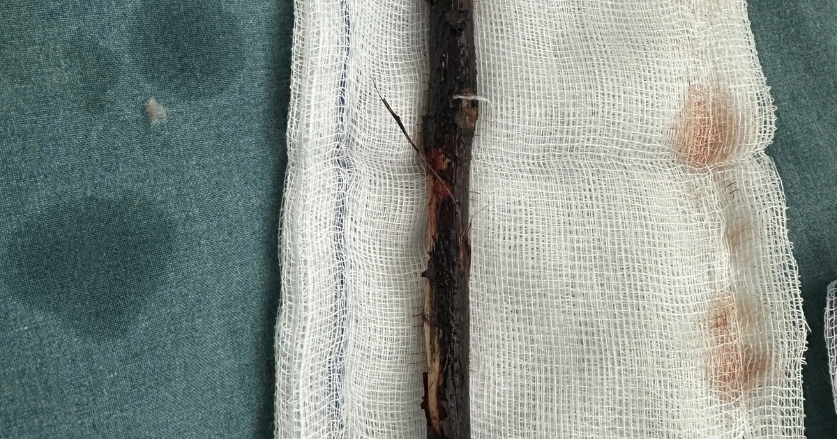 Sau 4 giờ phẫu thuật, các bác sĩ đã lấy ra nguyên vẹn cành cây dài 16 cm. Bệnh nhân được xử lý cầm máu, khâu vết thương và làm hậu môn tạm.