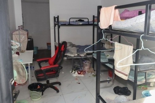 Quần áo và các vật dụng cá nhân khác bên trong Khu phức hợp Taiza, một khu vực tội phạm gần Phnom Penh, Campuchia. |