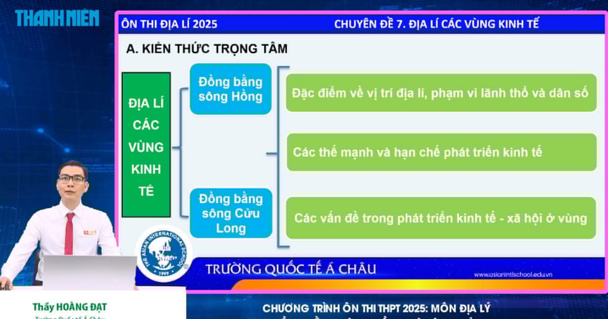 Chương trình "Bí quyết ôn thi THPT 2025" hướng dẫn học sinh làm bài thi môn địa lý, kỳ thi tốt nghiệp THPT 2025. Buổi hướng dẫn do thầy Hoàng Đạt - Trường Quốc tế Á Châu thực hiện. Chương trình được phát trên các kênh thanhnien.vn, facebook.com/thanhnien và YouTube Báo Thanh Niên.