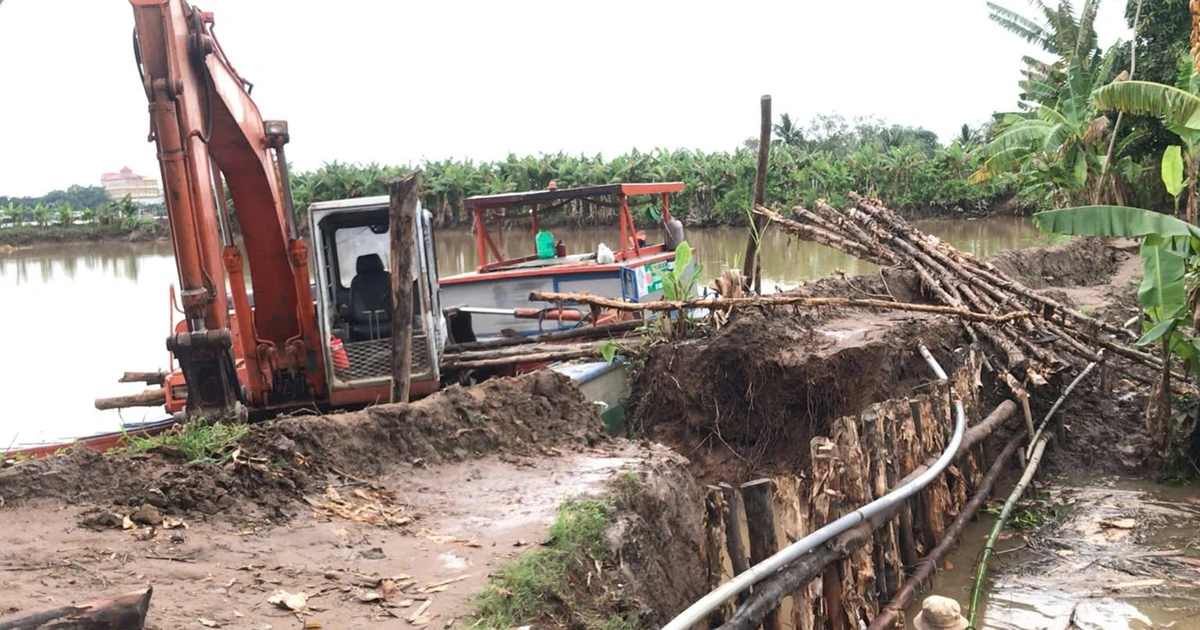 Vỡ đê ở cồn Sơn (P.Bình Thủy, TP.Cần Thơ) khiến nhiều vườn trái cây chìm trong nước, nhà dân ngập sâu, nhiều tài sản bị hư hỏng.