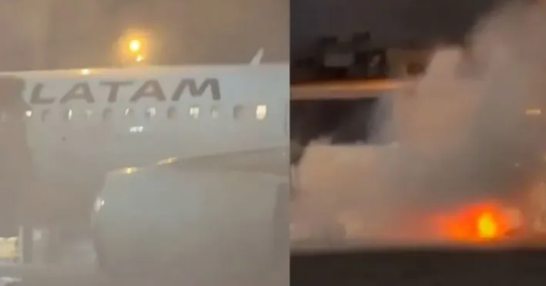 Đoạn video quay tại hiện trường vụ cháy đường băng sân bay cho thấy hành khách hoảng loạn chen chúc nhau đến cửa thoát hiểm của máy bay. Máy bay trong vụ việc do hãng hàng không LATAM Airlines khai thác.