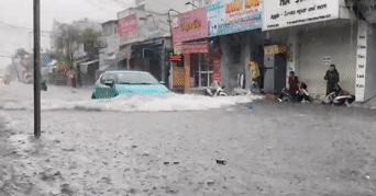 Chỉ sau một cơn mưa đường TPHCM lại thành 'sông', người và xe đua nhau 'bơi' trên phố