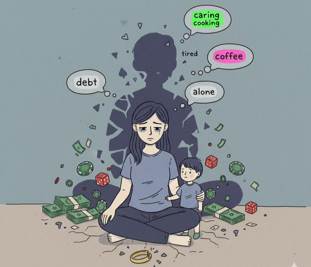 Tôi 24 tuổi, lấy chồng được 5 năm và có một bé 4 tuổi. Chồng hơn tôi 14 tuổi. Ngày mới quen, anh rất chiều chuộng, quan tâm tôi. Vài lần tôi muốn chia tay, anh lại "văn vở", làm đủ trò để tôi thương hại rồi quay lại, cuối cùng cưới anh. Sau này tôi mới hiểu, tính anh vốn là như vậy, chỉ giỏi nói, còn khi cưới về thì mọi thứ hoàn toàn thay đổi. Ngày đó, tôi còn quá ngây thơ, suy nghĩ non nớt. Tôi tưởng lấy chồng lớn tuổi sẽ được quan tâm, yêu thương. Nào ngờ, khi tôi mang bầu, anh bỏ bê, chẳng hề quan tâm. Dù bụng bầu to, tôi vẫn phải đi bán hàng, còn anh đi chơi. Anh ham vui, đánh bài, cá độ, lô đề.