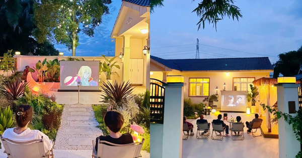 Khi màn đêm buông xuống, đèn trang trí trong chòi đồng loạt thắp sáng, rèm voan khẽ lay trong gió, khiến không gian như chìm trong bầu trời đầy sao, ấm áp và lãng mạn. Đặc biệt, vào những buổi tối yên ả, cả nhà có thể mang máy chiếu ra giữa sân, bày trái cây và đồ ăn nhẹ lên bàn trà nhỏ, cùng xem phim ngoài trời giữa khung cảnh thiên nhiên tươi đẹp và thư thái.