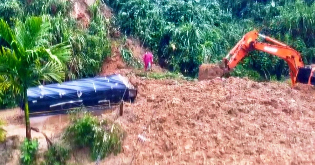 Một xe tải chuyên cung cấp thực phẩm cho xã vùng cao Phước Thành (TP.Đà Nẵng) bất ngờ bị khối lượng lớn đất đá vùi lấp khi đi qua đoạn đường sạt lở. Tài xế may mắn kịp thoát ra ngoài, thoát chết trong gang tấc.