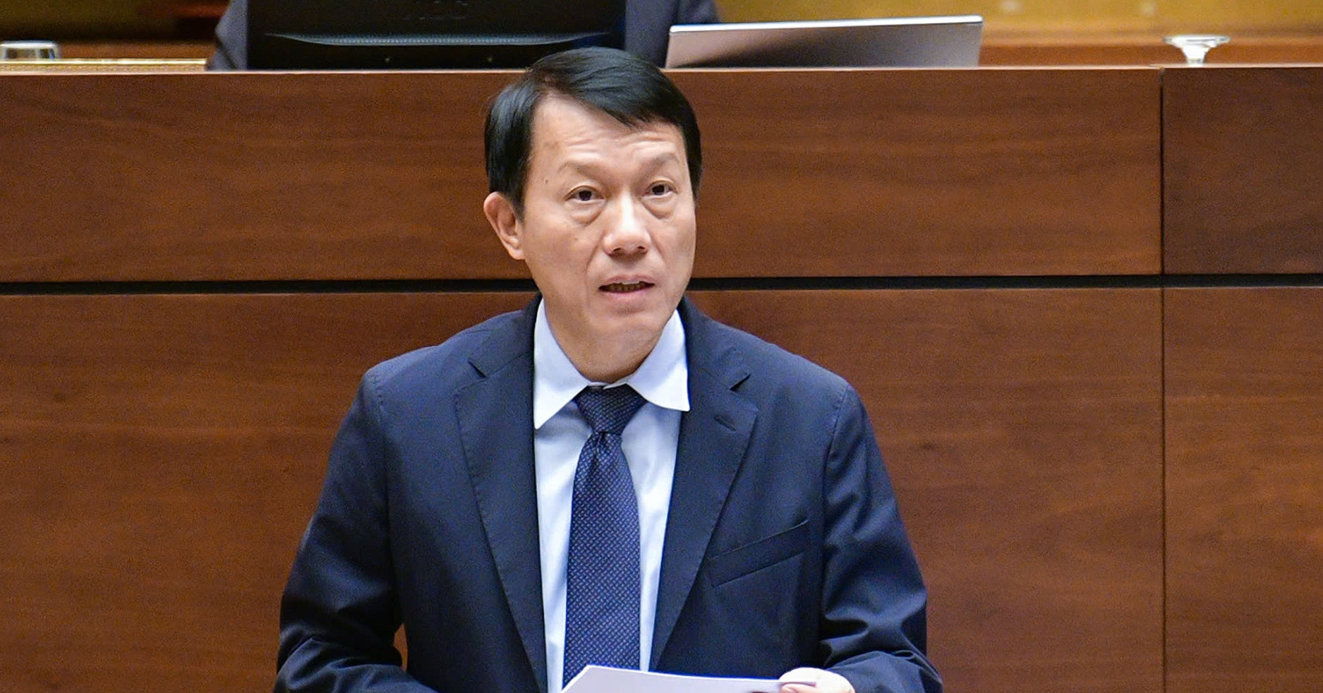 Trước khi biểu quyết thông qua, Đại tướng Lương Tam Quang, Bộ trưởng Công an thay mặt Chính phủ báo cáo Quốc hội tiếp thu, giải trình ý kiến dự luật.
